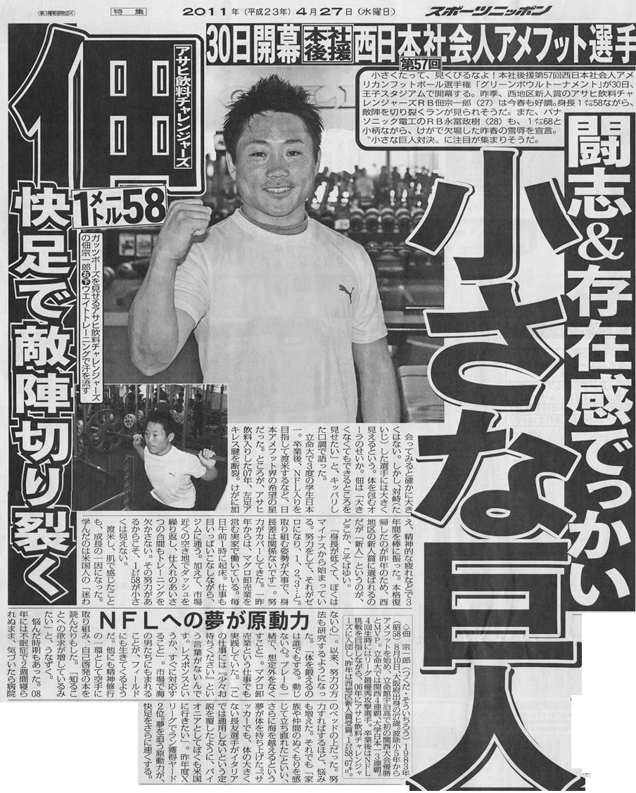 ・2011/04/27 スポニチ 「小さな巨人:快速で敵陣切り裂く」 <紙面コピ-を表示>