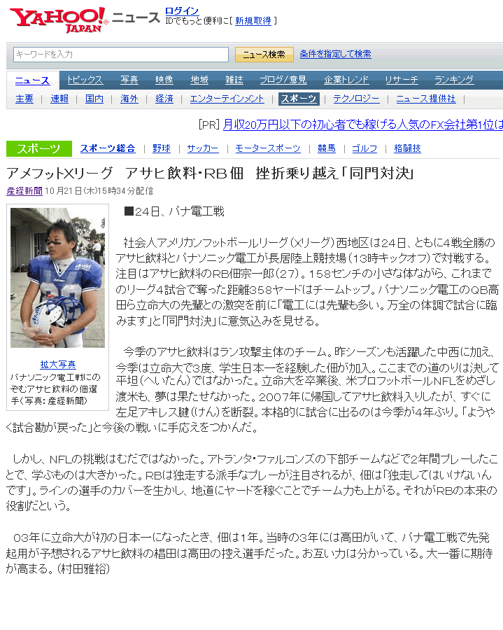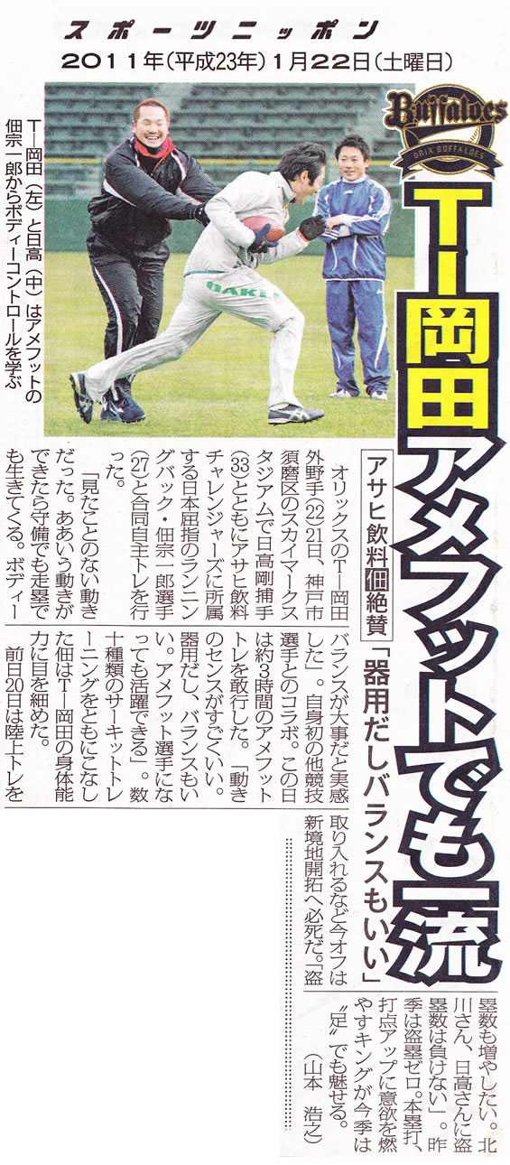 ・2011/01/22 スポニチ 「T―岡田に太鼓判「アメフト選手になっても活躍」(NET)」 <紙面コピ-を表示>