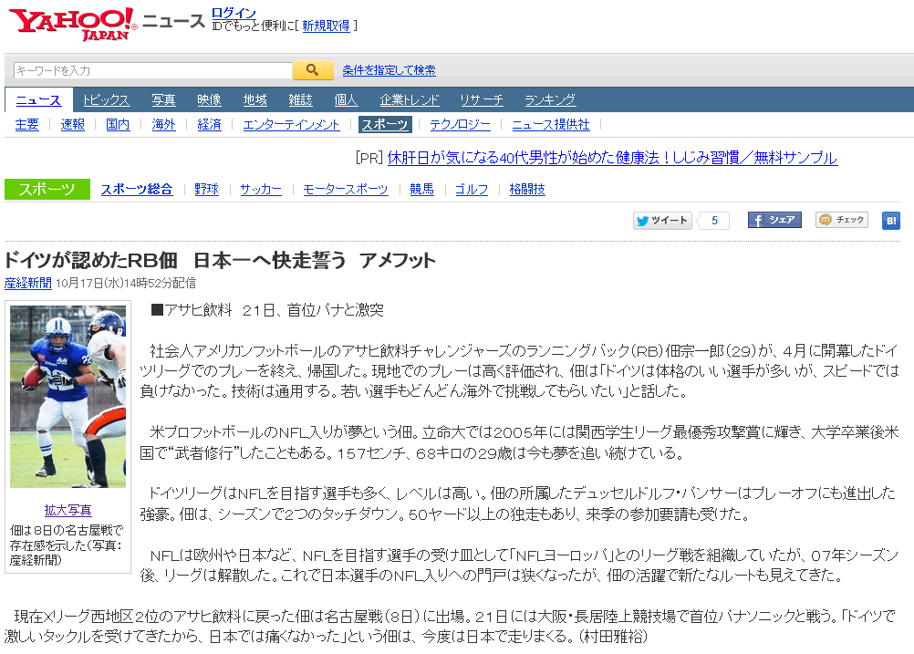 ・2012/10/17 産経新聞 「ドイツが認めたRB佃 日本一へ快走誓う」 <ネット配信コピ-を表示>
