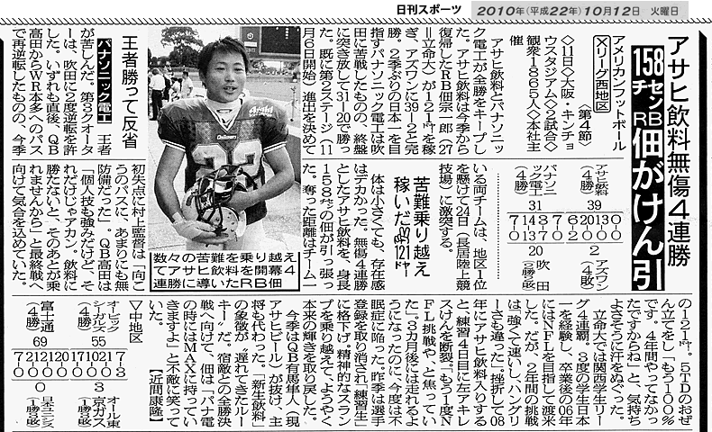 ・2010/05/23 スポニチ大阪 「アサヒ飲料、V奪回へ快勝!グリーンボウル交流戦」 <コピ-を表示>